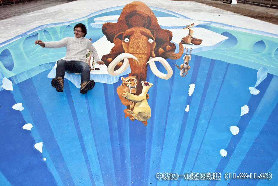 11月23日,德國街頭畫家埃德加·穆勒在英國倫敦一家購物中心展示他以動(dòng)畫電影《冰河時(shí)代3》為主題創(chuàng)作的大型立體畫。這幅立體畫占地320平方米,創(chuàng)造了新的吉尼斯世界紀(jì)錄,給人們帶來妙趣橫生的視覺體驗(yàn)。圖片來源:中國新聞網(wǎng)>>點(diǎn)擊觀看詳細(xì)內(nèi)容