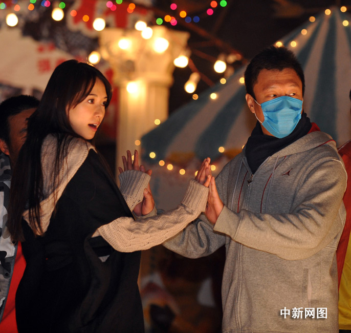 29日,由新銳導(dǎo)演李蔚然執(zhí)導(dǎo),孫紅雷、林志玲和甘薇領(lǐng)銜主演的西部奪寶喜劇大片《決戰(zhàn)剎馬鎮(zhèn)》在京郊組織了媒體探班,當(dāng)日拍攝的戲份是全片的最為精彩的重頭戲之一,整個片場喜氣洋洋,全劇組演員齊上陣,整個現(xiàn)場呈現(xiàn)一片舞蹈的海洋。其中林志玲和孫紅雷在這場大戲中大秀舞技,成為全場亮點。圖為在彩排現(xiàn)場,一向以硬漢示人的孫紅雷為了預(yù)防流感戴上了口罩。中新網(wǎng)記者 金碩 攝