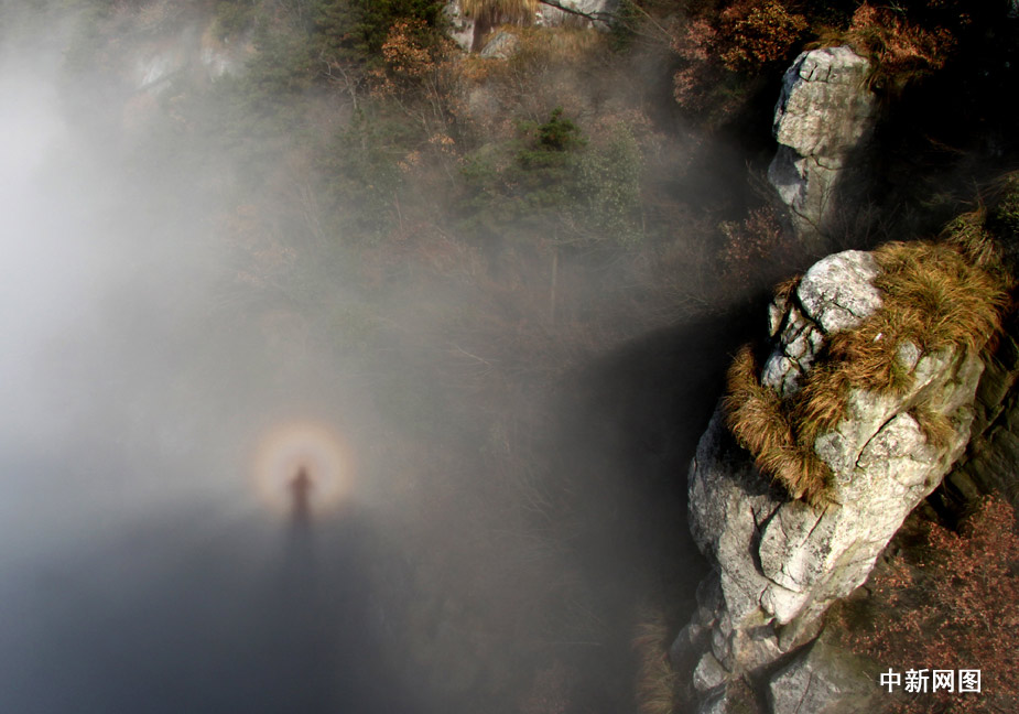 11月29日,受北方弱冷空氣影響,廬山出現(xiàn)平流云、佛光奇觀,佛光持續(xù)了近二個多小時(shí)。胡國林 攝 圖片來源:中國新聞網(wǎng)