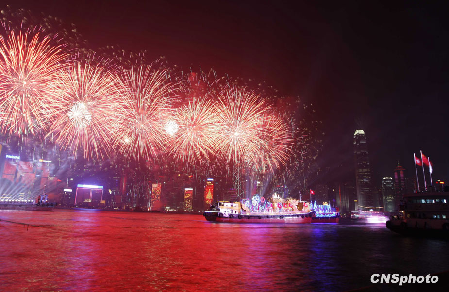 12月5日晚,第5屆東亞運(yùn)動會開幕式在香港維多利亞港舉行,同時配以花船巡游、燈光效果和煙花匯演,成為一屆富有特色的水上開幕式。中新社發(fā) 盛佳鵬 攝