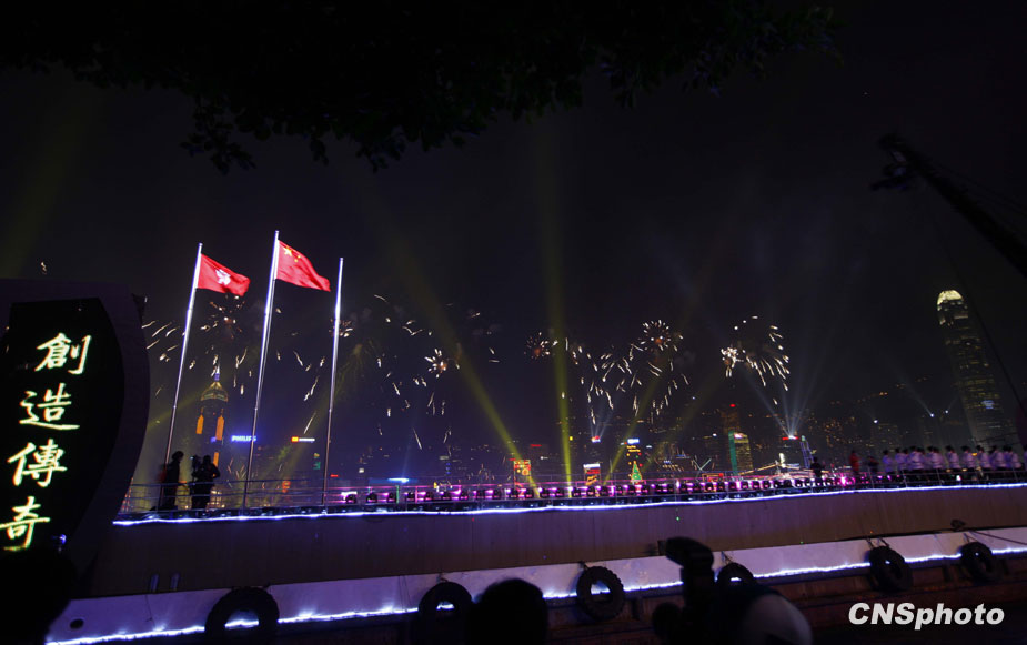 12月5日晚,第5屆東亞運動會開幕式在香港維多利亞港舉行,同時配以花船巡游、燈光效果和煙花匯演,成為一屆富有特色的水上開幕式。中新社發(fā) 盛佳鵬 攝