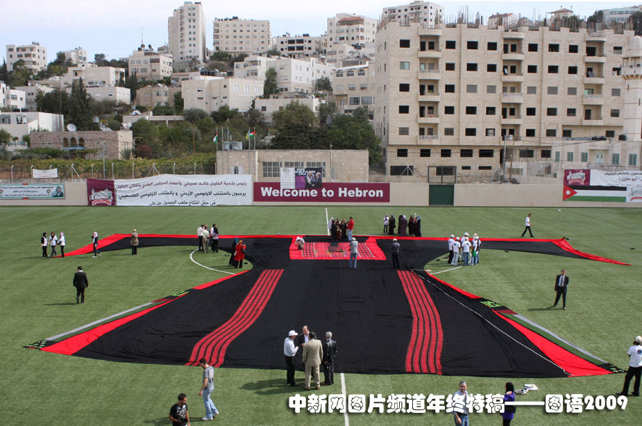 世界最大的球衣:10月25日,巴勒斯坦人利用傳統(tǒng)刺繡工藝制作了世界上最大的球衣,并獲得了吉尼斯紀(jì)錄的認(rèn)可。圖片來(lái)源:中國(guó)新聞網(wǎng)