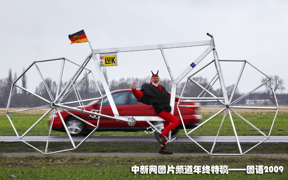 世界最不可思議的自行車:3月24日,德國自行車制作高手迪迪·森夫特展示他造出的幾款怪異的自行車這幾款自行車不但體型巨大,而且車輪還是多邊形。森夫特的杰作,讓您目瞪口呆。他換了一輛裝有五邊形后輪的自行車,照樣騎得歡。還有四邊形、三角形,全都不在話下。森夫特還曾制作過一輛巨大的吉他形自行車、一輛用自行車鈴鐺焊接成的魚形自行車,以及一個(gè)用100多個(gè)足球拼成的巨大車輪。圖片來源:中國新聞網(wǎng)