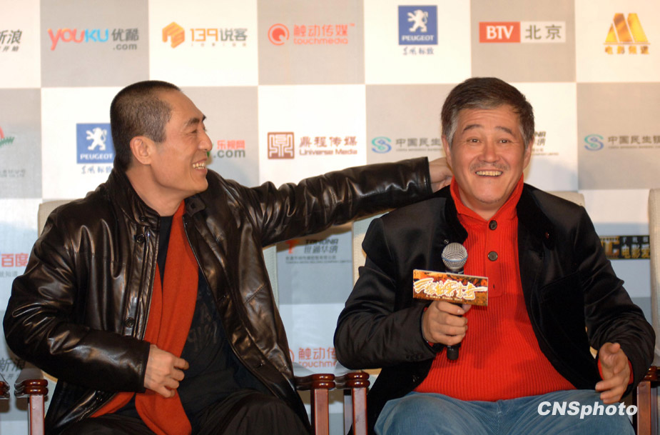 12月9日下午,張藝謀喜劇新作《三槍拍案驚奇》在京舉行首映發(fā)布會,導(dǎo)演張藝謀、大病初愈的趙本山攜孫紅雷、小沈陽、閆妮、倪大洪、程野、毛毛全明星主創(chuàng)團隊齊齊亮相,F(xiàn)場張藝謀、趙本山、小沈陽搞笑不斷,引得爆笑連連,上演了一出戲外喜劇。趙本山首度回應(yīng)了花兩億購買私人飛機一事,稱還沒有定下來。張藝謀表示會和“趙家班”繼續(xù)深度合作,并且豪言預(yù)計未來的中國電影單部影片票房可能達(dá)到2億美元。圖為張藝謀、趙本山現(xiàn)場極盡搞笑天賦。中新社發(fā) 李學(xué)仕 攝