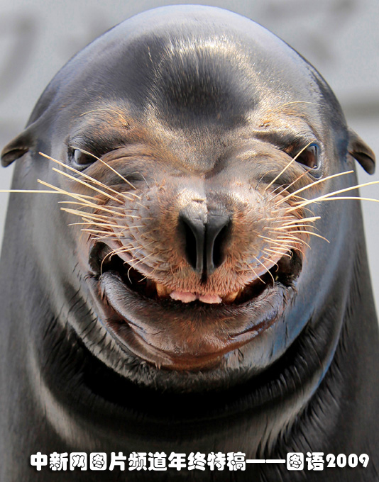 日本東京,一只調皮的海獅在對著觀眾們“微笑”。