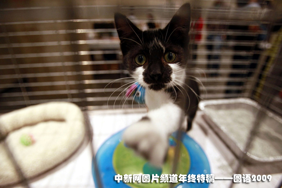 10月17日,世界最大的寵物貓狗展示會(huì)在美國(guó)紐約舉行。一只小貓“舉手乞食”。