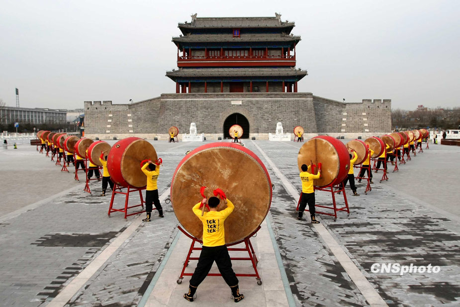 12月12日是氣候變化全球行動(dòng)日(Global Day of Action),國(guó)際環(huán)保組織綠色和平聯(lián)同北京20名鼓手,在北京古老的永定門城樓前擂響巨鼓,用震耳欲聾的鏗鏘鼓聲助威正在哥本哈根召開的全球氣候大會(huì)。鼓手們以中國(guó)傳統(tǒng)的擂鼓助威方式,通過凝重急促的鼓聲向全世界發(fā)出警告:“拯救氣候,刻不容緩”。