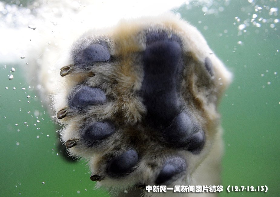 8日(周二),在德國(guó)蓋爾森基興的動(dòng)物園中,一頭熊在水中玩耍。圖片來源:中國(guó)新聞網(wǎng)