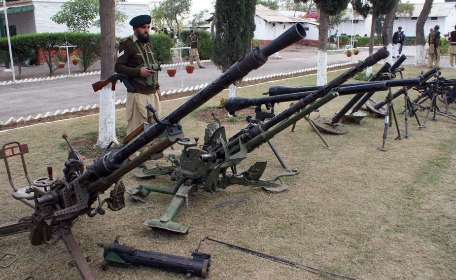 12月12日,在巴基斯坦西北部開伯爾部落地區(qū),巴基斯坦軍方抓獲多名塔利班武裝分子,繳獲大量軍火。圖片來源:中國新聞網