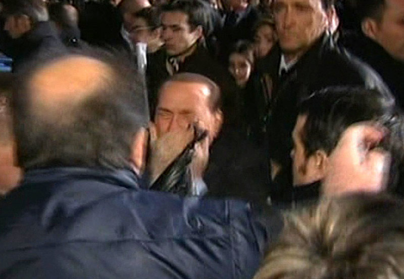 時(shí)值政治盟友沖刺階段,貝盧斯科尼照例參加自己黨派的集會(huì)。就在他給支持者簽名時(shí),人群中一名中年男子突然毆打其面部。當(dāng)?shù)仉娨暸_(tái)畫(huà)面顯示,跌倒在地的貝盧斯科尼被助手扶起時(shí),口鼻出血,面部淤青,表情痛苦。