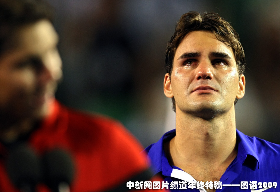 澳網(wǎng)決賽中失利的費德勒淚灑當場。