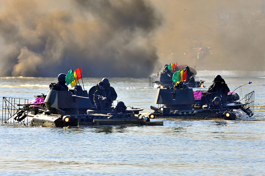 韓國(guó)陸軍進(jìn)行大規(guī)模渡河實(shí)戰(zhàn)訓(xùn)練