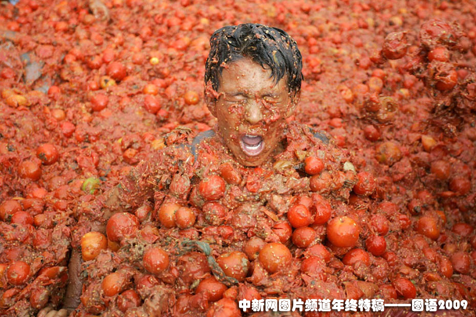 哥倫比亞舉辦“番茄狂歡節(jié)”——6月14日,哥倫比亞在首都波哥大東北部的蘇塔馬錢小鎮(zhèn)舉行一年一度的“番茄狂歡節(jié)”,互不相識(shí)的人們互相投擲番茄慶祝節(jié)日。