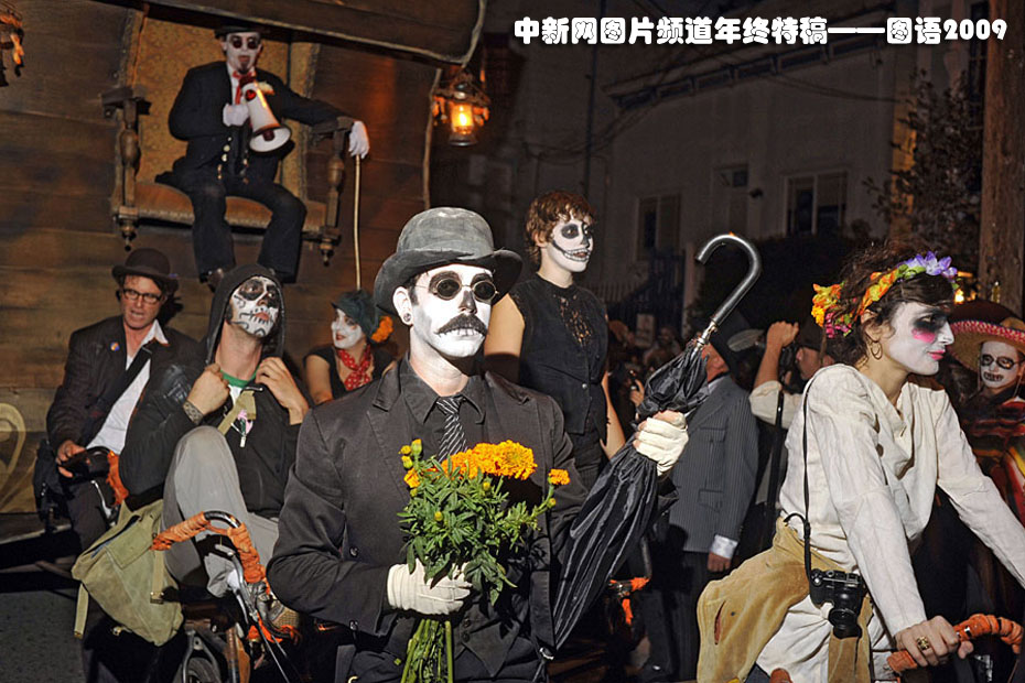 美國(guó)舊金山居民歡慶“亡靈節(jié)”——11月2日,美國(guó)舊金山居民扮成鬼怪模樣慶!巴鲮`節(jié)”。“亡靈節(jié)”是拉美地區(qū)的傳統(tǒng)節(jié)日,類似于中國(guó)的清明節(jié)。