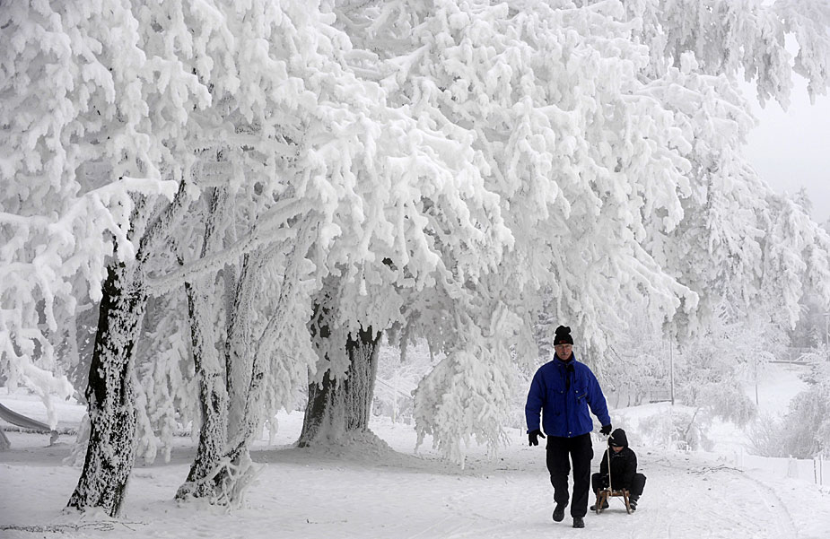 12月16日,德國阿爾滕貝格人們?cè)谘┲墟覒颉?/p>