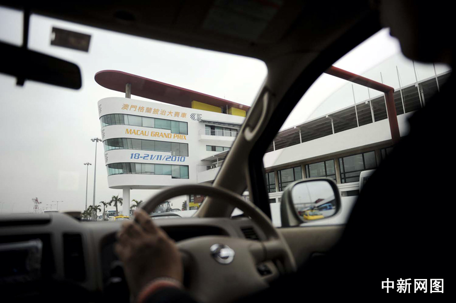 澳門民眾開車路過澳門賽車場(chǎng),在平日里這個(gè)賽場(chǎng)的賽道作為普通道路供車輛行駛。中新社記者 廖攀 攝