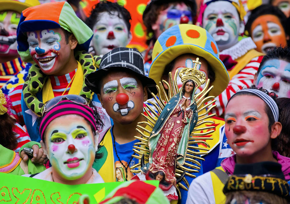 12月16日,墨西哥小丑們聚集在首都墨西哥城參加街頭游行活動(dòng),700多名小丑用自己五彩斑斕的服飾和滑稽可笑的表演為沿途的人們帶來歡笑。圖片來源:中國(guó)新聞網(wǎng)