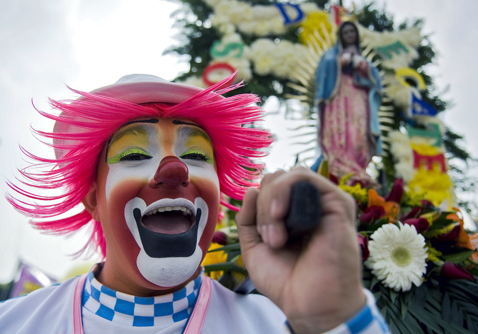 12月16日,墨西哥小丑們聚集在首都墨西哥城參加街頭游行活動(dòng),700多名小丑用自己五彩斑斕的服飾和滑稽可笑的表演為沿途的人們帶來(lái)歡笑。圖片來(lái)源:中國(guó)新聞網(wǎng)