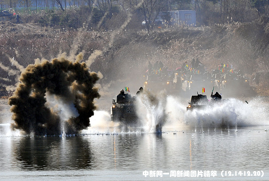 16日(周三),韓國第20師團(tuán)機(jī)械化部隊(duì)在京畿道驪州南漢江一帶進(jìn)行大規(guī)模渡河實(shí)戰(zhàn)訓(xùn)練。該訓(xùn)練以培養(yǎng)戰(zhàn)斗執(zhí)行能力為重點(diǎn)。圖片來源:中國新聞網(wǎng)
