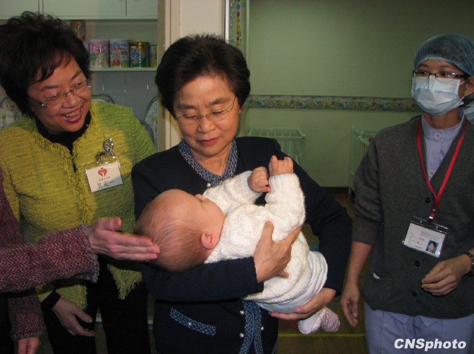 12月19日下午,國家主席胡錦濤的夫人劉永清參觀澳門母親會托兒所時,抱起一名不足一歲的嬰兒。中新社發(fā) 于晶波 攝