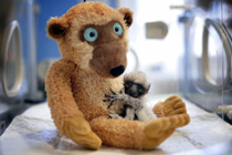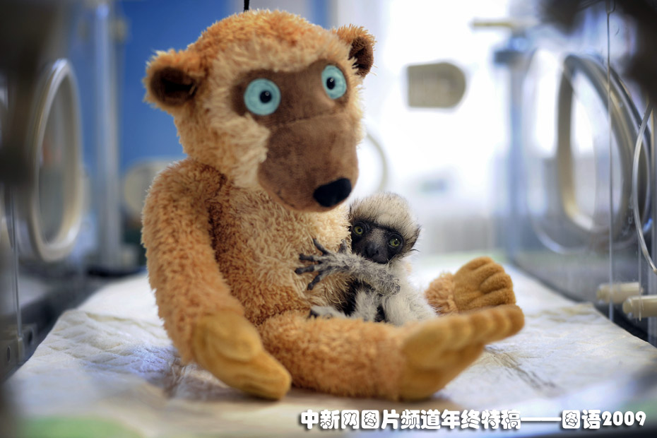 1月20日,一只瀕臨滅絕的小猴在玩具猴“媽媽”的懷抱下成長。