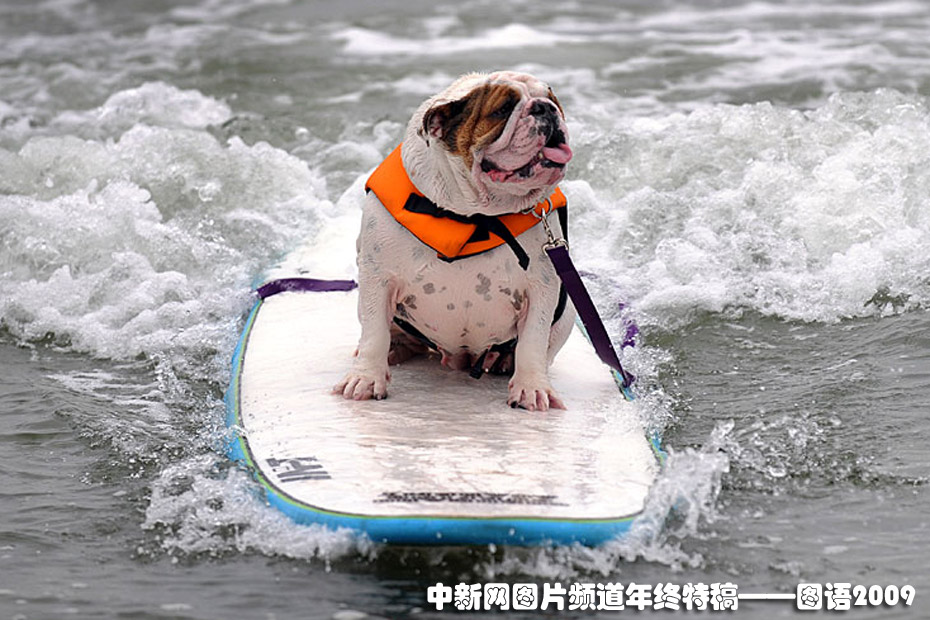 小狗沖浪比賽-讓人忍俊不禁--6月20日,在美國加利福尼亞州帝國沙灘舉行了一場小狗沖浪比賽,小狗們表現(xiàn)得十分認(rèn)真。