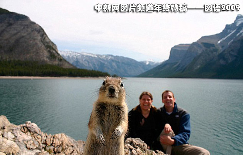 一對(duì)夫婦加拿大的一個(gè)國(guó)家公園旅游,打算留影紀(jì)念,他們將相機(jī)設(shè)為自拍模式,并調(diào)好了時(shí)間,可當(dāng)他們擺好pose,即將拍攝的時(shí)候,一只頑皮的松鼠突然跳出來,“搶了鏡頭”。