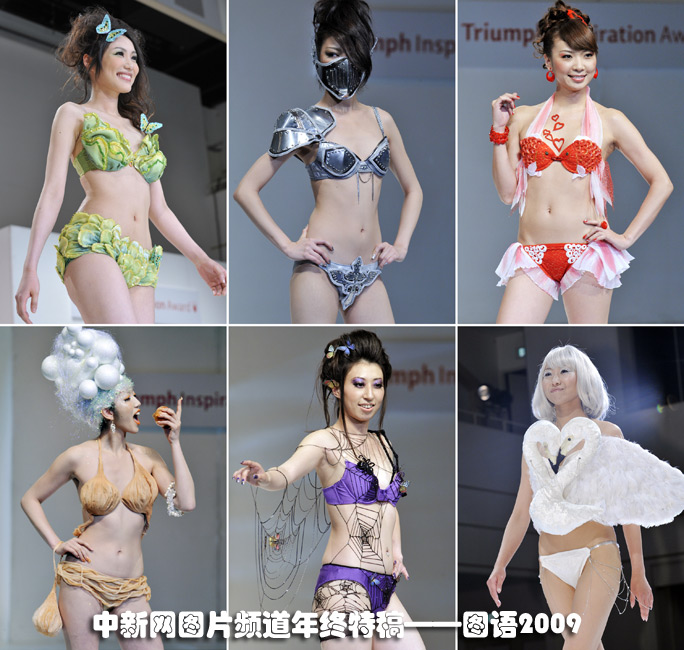 5月25日,日本東京舉辦了一場(chǎng)內(nèi)衣創(chuàng)意設(shè)計(jì)大賽,作品風(fēng)格新奇搞怪,有白菜、圣女、金魚(yú)、天鵝、蜘蛛、甚至洋蔥等多種造型,火辣的模特配以怪異的內(nèi)衣,令觀眾大飽眼福。