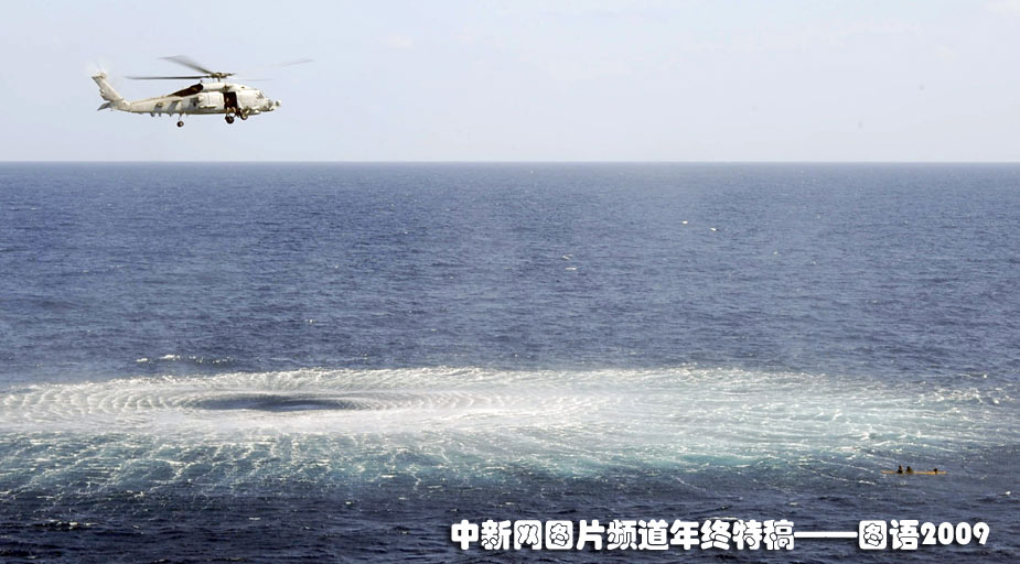 2009年11月17日,亞丁灣,3名漁民抱著木板在海面上漂流3天后獲救。據(jù)悉,他們?cè)庥隽耸畮酌伤坪1I的劫持,海盜們讓其選擇或跳海逃生或被殺死。