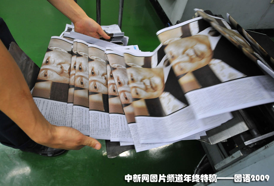 8月18日,新出版的韓國(guó)日?qǐng)?bào)上印有前總統(tǒng)金大中逝世的消息。