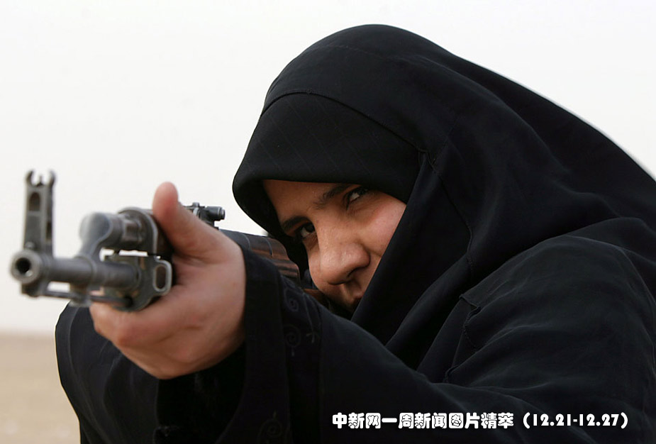22日(周二),在伊拉克納杰夫的警察學(xué)院,一名女警官在槍械訓(xùn)練中瞄準目標。