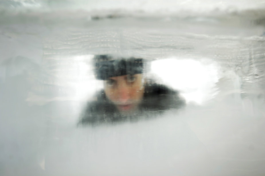 當(dāng)?shù)貢r(shí)間29日早上8點(diǎn)起,以色列魔術(shù)師赫齊·達(dá)揚(yáng)在位于特拉維夫的拉賓廣場(chǎng)上,達(dá)揚(yáng)赤身進(jìn)入一塊8噸重的冰塊里,開始了挑戰(zhàn)冰屋生存世界紀(jì)錄之旅。圖片來源:中國新聞網(wǎng)