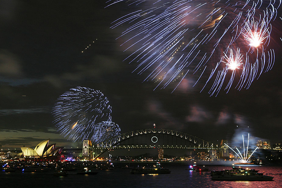 圖為12月31日,絢麗的煙花與悉尼灣大橋和悉尼歌劇院交相輝映。澳大利亞悉尼市當晚舉行焰火表演,迎接即將到來的新年。