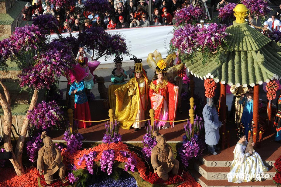 美國(guó)當(dāng)?shù)貢r(shí)間1月1日,第121屆美國(guó)玫瑰花車大游行在加州帕薩迪納市隆重舉行。著名影星成龍助陣中國(guó)上海世博花車。圖片來(lái)源:中國(guó)新聞網(wǎng)