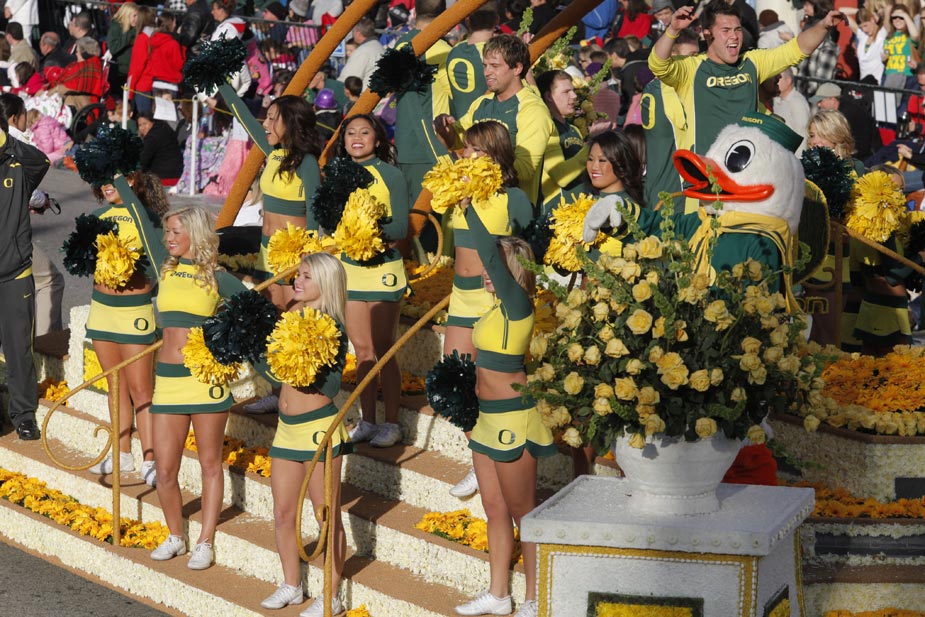 圖為美國(guó)第121屆玫瑰花車大游行現(xiàn)場(chǎng)。
