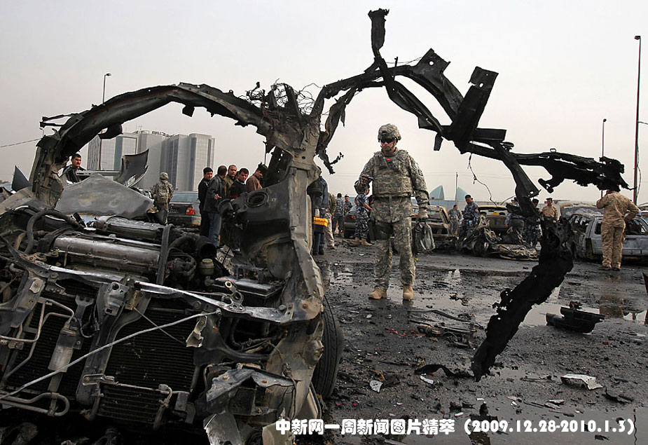 周二(29日),巴格達(dá)東部的政府辦公地發(fā)生爆炸事件,駐阿美軍士兵正在檢查案發(fā)地。圖片來(lái)源:中國(guó)新聞網(wǎng)