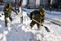 四日,韓國大部分地區(qū)遭遇大雪。至下午二時左右,首爾地區(qū)積雪厚度超過二十八厘米,這是韓國自一九三七年開始進行積雪量觀測以來的最新紀錄。圖為1月5日,民眾在街頭除雪。
