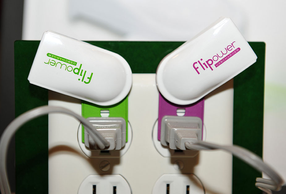 圖為國(guó)際消費(fèi)電子展上展示新型USB充電器。