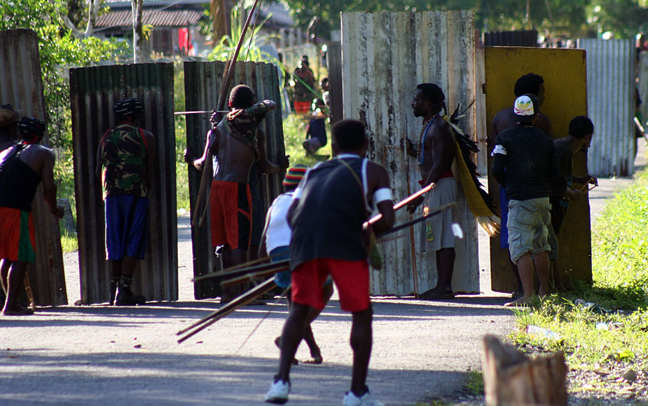 1月6日,印尼巴布省的兩個村落因債務(wù)問題引發(fā)了武裝爭斗,雙方手持弓箭等原始武器進行了一場原始的戰(zhàn)爭。目前,這場沖突已經(jīng)造成多人傷亡。圖片來源:中國新聞網(wǎng)