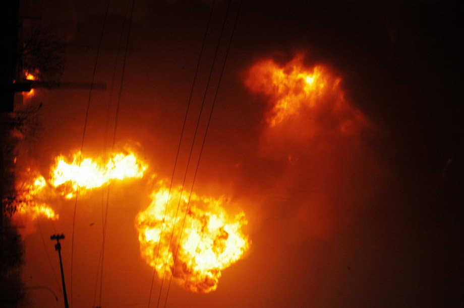 1月7日,蘭州石化公司石油化工廠316罐區(qū)爆炸著火。甘肅省政府當(dāng)日深夜在現(xiàn)場舉行新聞發(fā)布會(huì)說,事故造成1人重傷、5人輕傷、9人留院觀察、5人失蹤。 圖為爆炸現(xiàn)場。于永昭/CFP