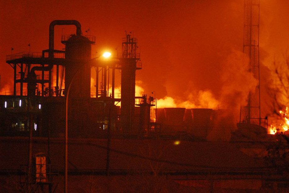 1月7日,蘭州石化公司石油化工廠316罐區(qū)爆炸著火。甘肅省政府當(dāng)日深夜在現(xiàn)場(chǎng)舉行新聞發(fā)布會(huì)說(shuō),事故造成1人重傷、5人輕傷、9人留院觀察、5人失蹤。 圖為爆炸現(xiàn)場(chǎng)。裴強(qiáng)/CFP