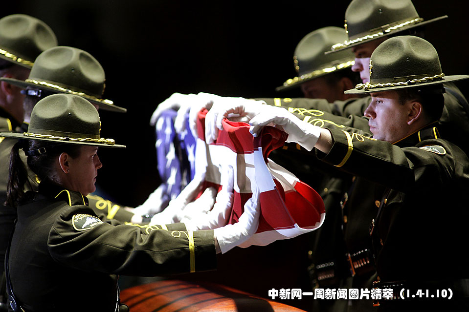 1月5日(周二),華盛頓州皮爾斯縣已故副警長孟德爾(Kent Mundell)的追悼會(huì)在塔科馬舉行,同事們將蓋在孟德爾棺木上的國旗折疊整齊。孟德爾上個(gè)月處理一起糾紛時(shí)遭槍擊身亡。圖片來源:中國新聞網(wǎng)