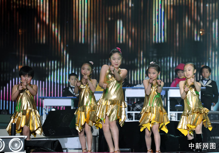1月11日晚,第二屆音樂風(fēng)云榜新人盛典在京舉行,盛典現(xiàn)場(chǎng)的音樂課上,兒童版的Wonder Girl、Super Junior、邁克爾·杰克遜、曾軼可、大張偉紛紛登臺(tái)獻(xiàn)藝,讓現(xiàn)場(chǎng)觀眾們笑聲不斷。中新網(wǎng)記者 金碩 攝