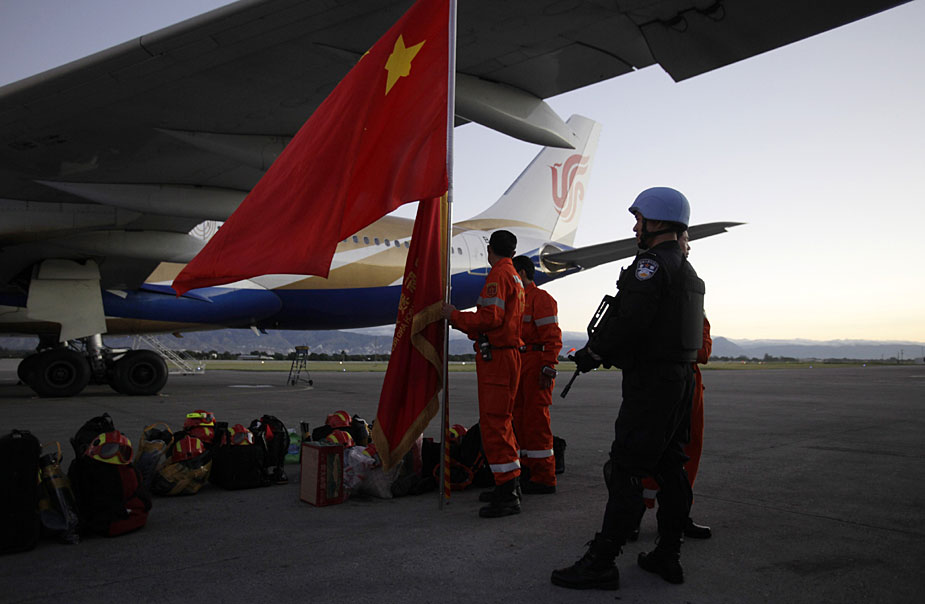 1月14日,中國(guó)國(guó)際救援隊(duì)乘坐中國(guó)國(guó)際航空公司專機(jī),飛行20個(gè)小時(shí)抵達(dá)海地首都太子港展開地震救援工作。