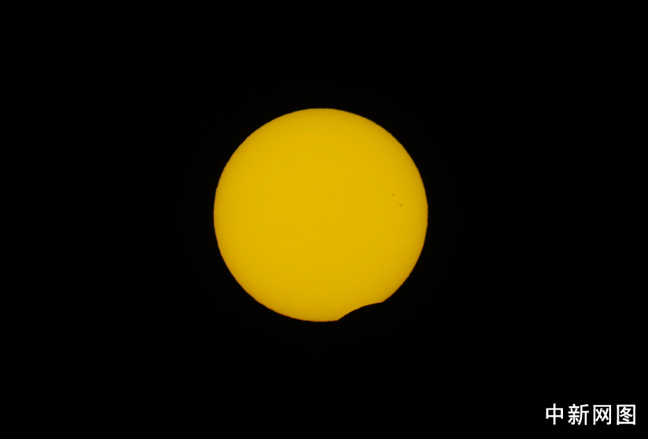 圖為北京時(shí)間15:35拍攝到的太陽(yáng)。中新網(wǎng)記者 金碩 攝