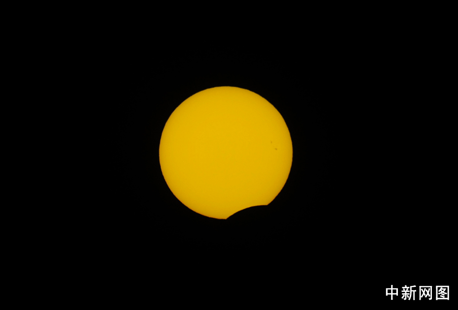 圖為北京時間15:38拍攝到的太陽。中新網(wǎng)記者 金碩 攝