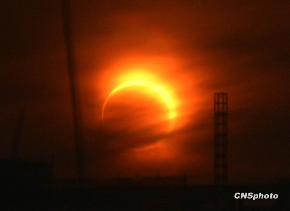 本世紀(jì)首場(chǎng),也是全球未來1000年內(nèi)環(huán)食持續(xù)時(shí)間最長(zhǎng)的日環(huán)食1月15日劃過天際。日環(huán)食帶從印度洋經(jīng)過緬甸進(jìn)入中國(guó)國(guó),由云南經(jīng)四川省的部分地區(qū),再穿過重慶市、湖北省西北部,直至華北地區(qū)。圖片來源:中國(guó)新聞網(wǎng)