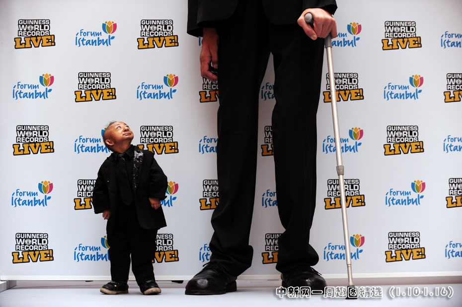1月14日,土耳其伊斯坦布爾,“世界最矮人”何平平和“世界最高人”土耳其人科森(Sultan Kosen)出席吉尼斯世界紀(jì)錄路演。圖片來源:中國新聞網(wǎng)>>點擊觀看詳細(xì)內(nèi)容
