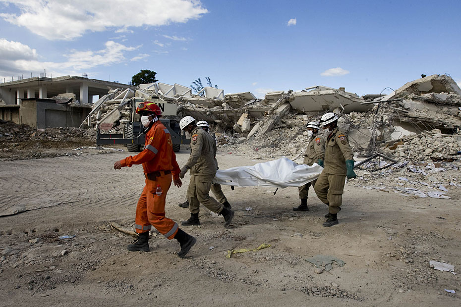1月16日,海地首都太子港,中國國際救援隊在聯(lián)海團(tuán)總部對遇難者進(jìn)行搜尋工作。此前八名中方失蹤人員的遺體已全被找到。圖片來源:中國新聞網(wǎng)