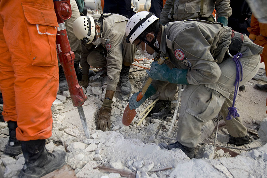 1月16日,海地首都太子港,中國國際救援隊在聯(lián)海團總部對遇難者進行搜尋工作。此前八名中方失蹤人員的遺體已全被找到。圖片來源:中國新聞網